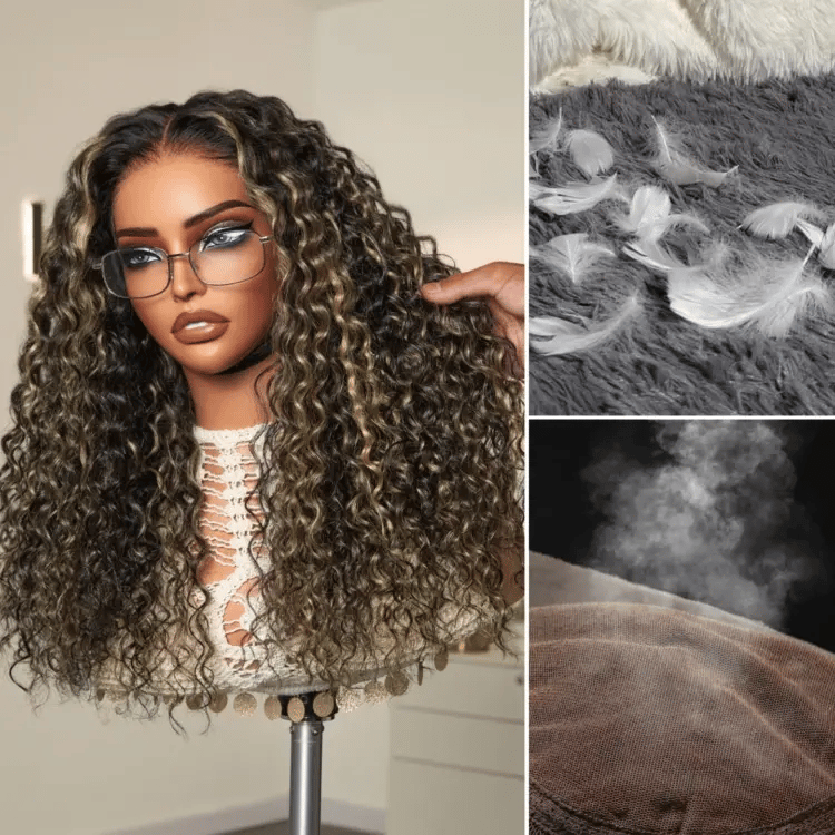 AiryFit™ Scalp Care Wigs - Blonde Highlight Water Wave Snugfit Glueless 5x5 Closure Lace Long Curly Wig Pre-Cut Lace